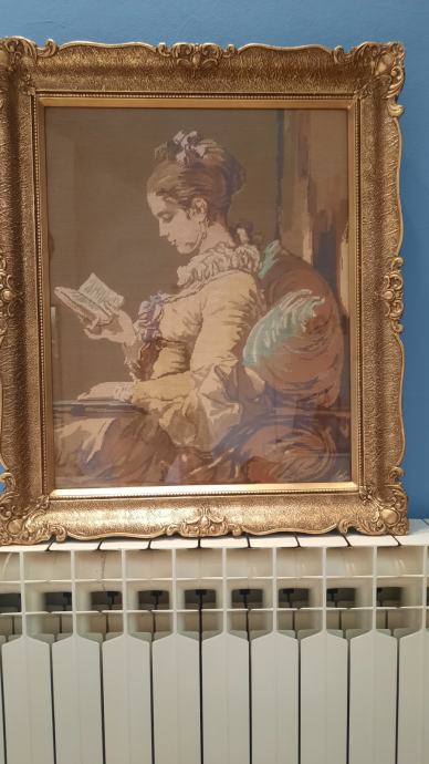 Goblen čitačica sa pozlačenim okvirom.