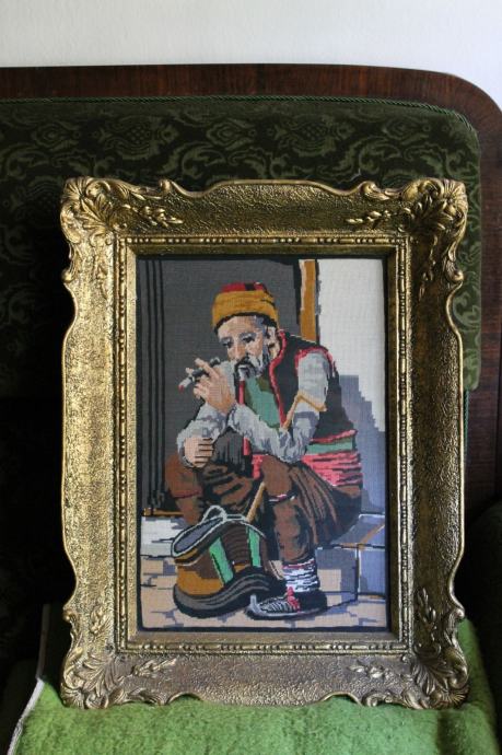 Goblen,ručno izrađen (barkona pozlaćena rama)