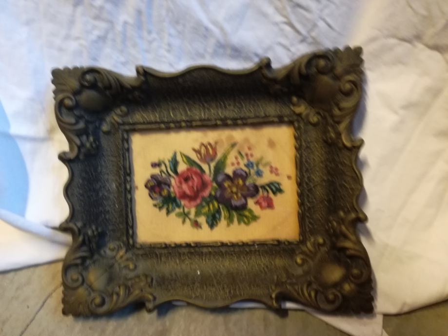 Goblen sa starinskim okvirom, cvjetni motiv.