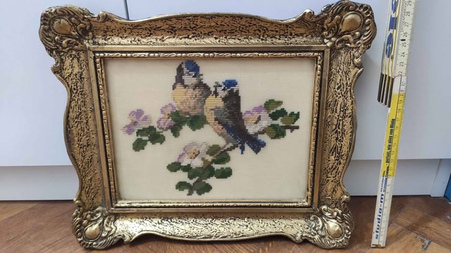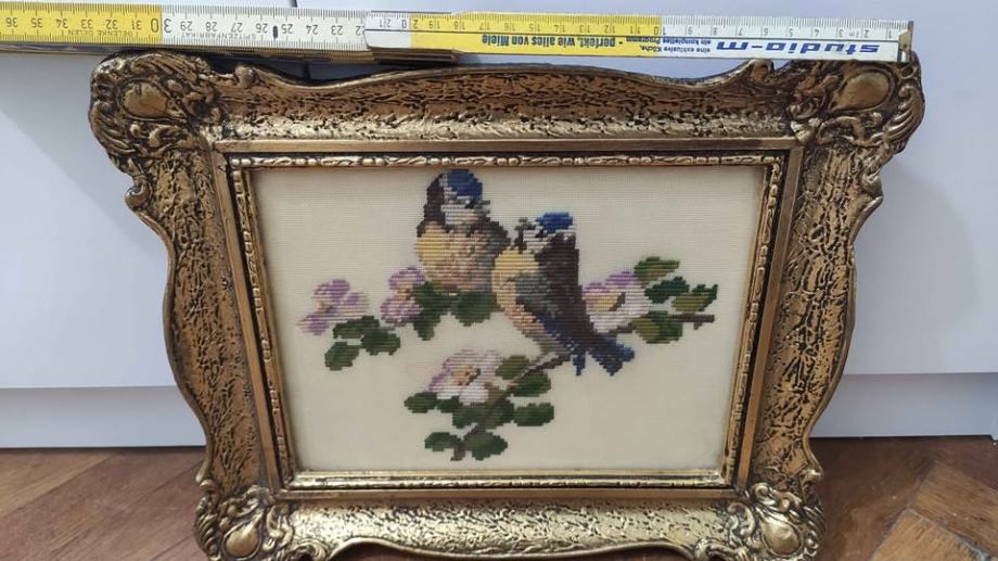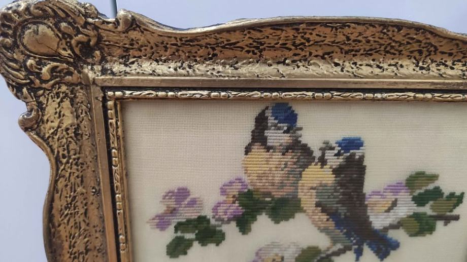 Goblen ptice i cvijeće- prekrasan, ručno vezeni, očuvan i uredan rad.