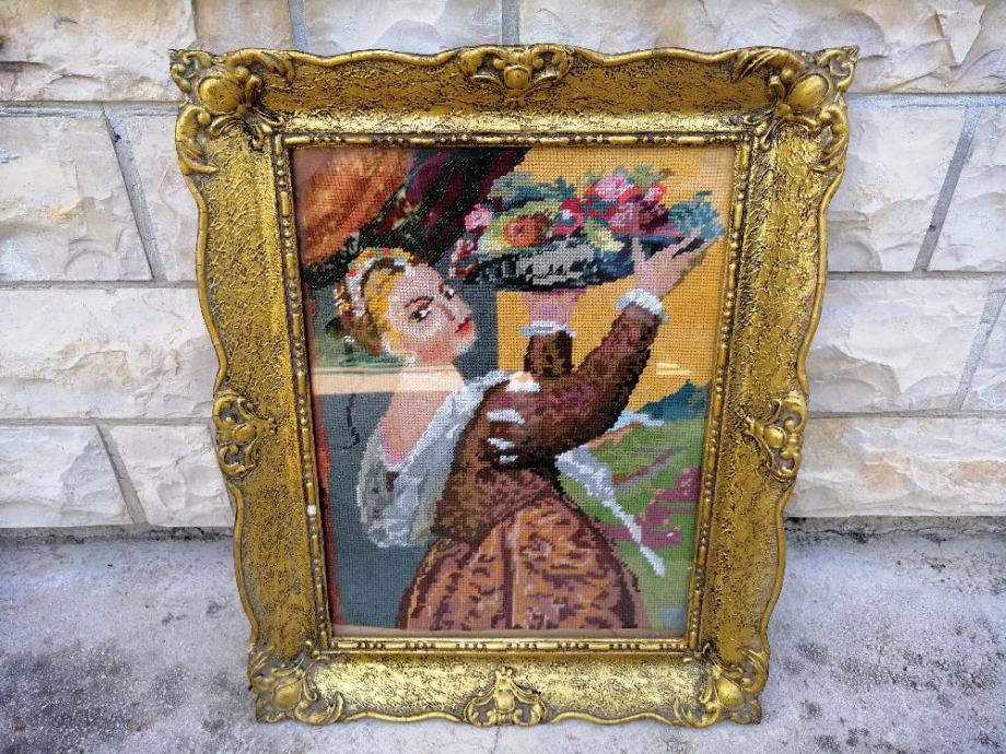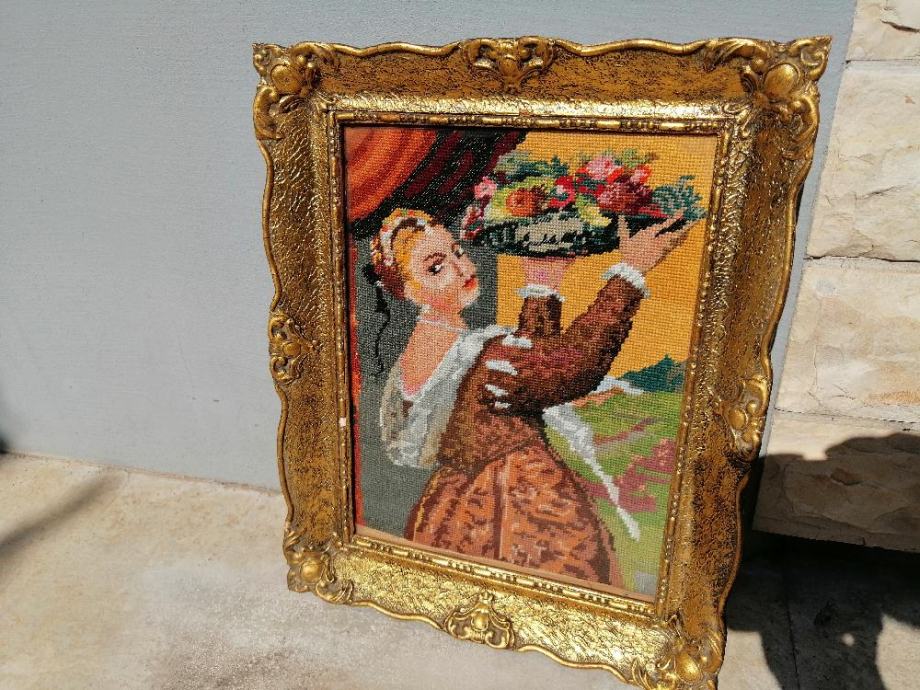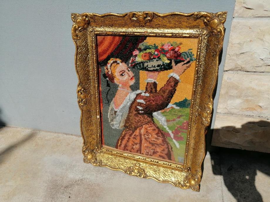GOBLEN SA SLIKE. SVE VIDLJIVO NA SLIKAMA. GOBLEN SE NALAZI U ZADRU. DIMENZIJA SA OKVIROM; VISINA 50,5cm, ŠIRINA 41cm.