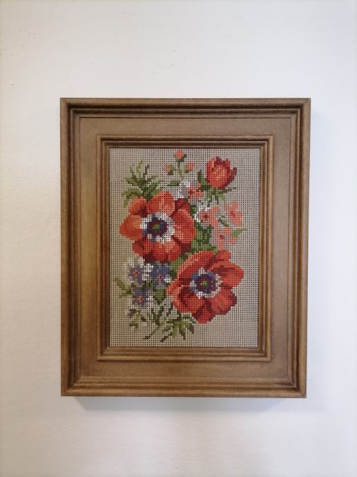 Potpuno nov goblen za vezenje, motiv cvijeća, sa drvenim okvirom.