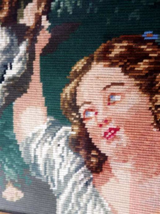 Rađen po originalnoj shemi i sa originalnim koncem..Barokno uokviren.