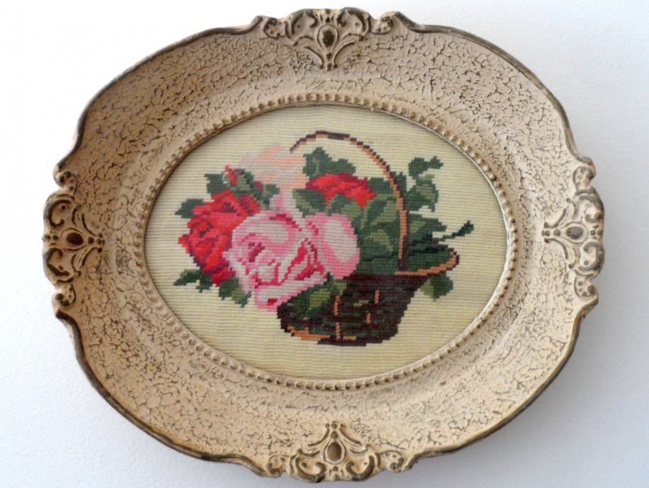 GOBLEN WIEHLER,RUŽE U PREDIVNOM BAROKNOM OKVIRU, 36X30CM OKVIR, 19X25CMGOBLEN