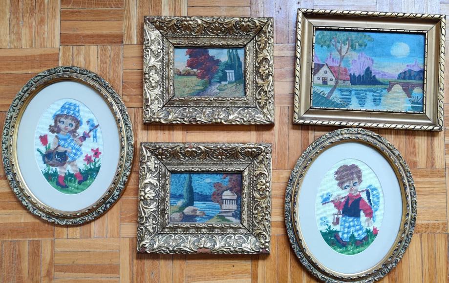 Gobleni u starinskim okvirima 5 kom - cijena po komadu, komplet za 30€