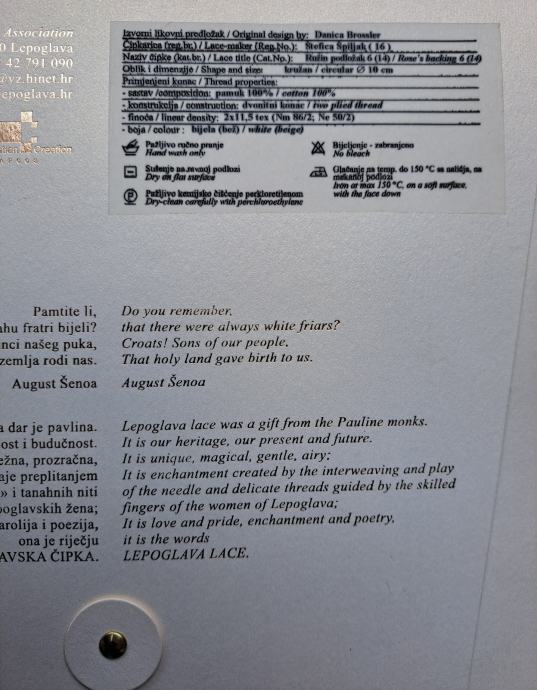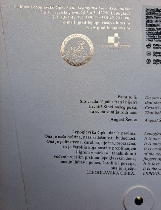 LEPOGLAVSKA ČIPKA - CERTIFIKAT