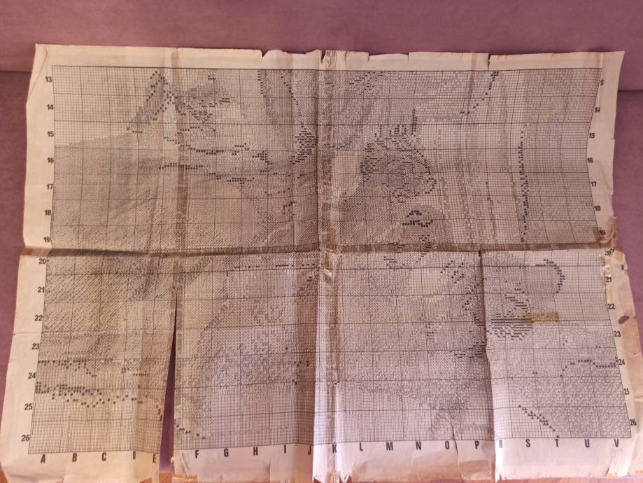 Stara sačuvana shema za izradu goblena prema impresijama slike Happy Family by Jean Honore Fragonard.