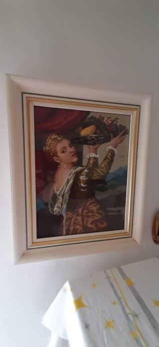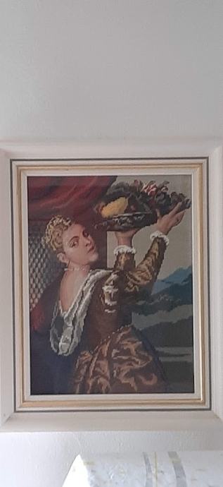 Izvanredni primjerak originalnog Wiehlerovog goblena rađen prema shemi i original koncima. Očuvan okvir.
