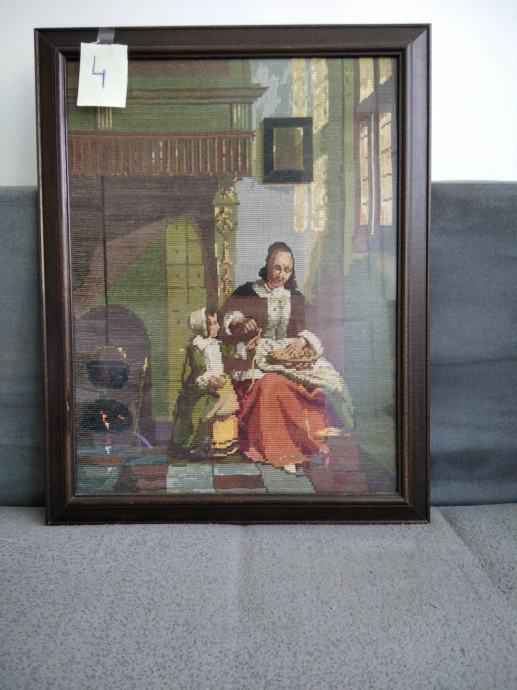 Prodaje se uramljeni Vilerov goblen "Žena guli jabuke", veličine 45 cm x 57,5 cm.