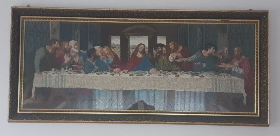Prodajem Wiehlerov goblen "Posljednja večera" ručni rad,veličina goblena 139×49. Goblen dolazi s pripadajućim renesansnim okvirom veličine 143×65. Slika i okvir su maksimalno očuvani,cijena je 4.644,44€