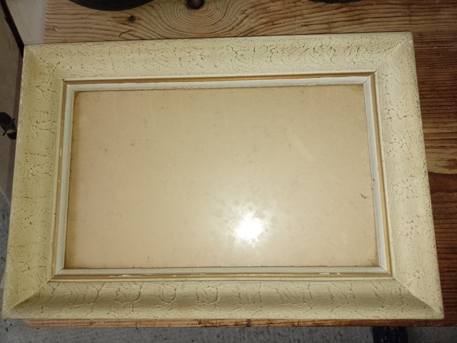 Rama za goblen ili sliku , vanjska dimenzija 49x33 x5 cm , nutarnja 38x22,5 cm , sa staklom . Rama je rabljena , ispšravna m, neoštećena .
