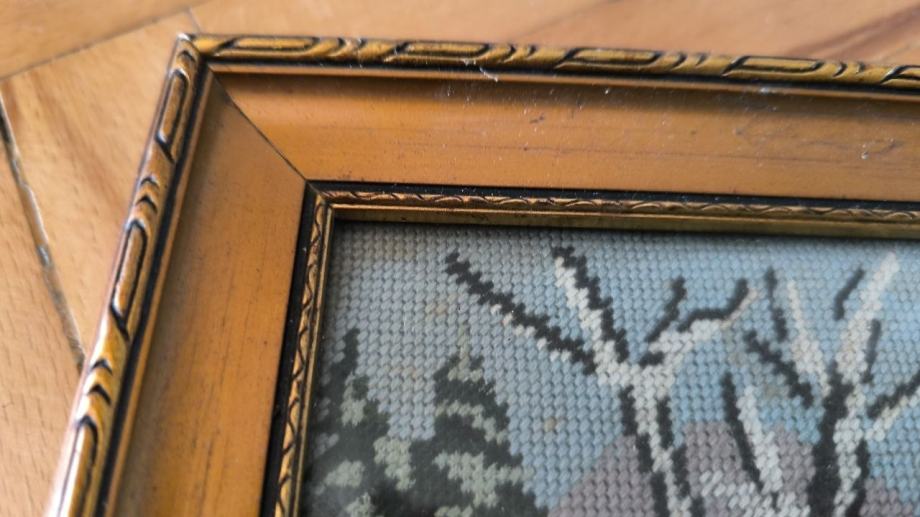 Prodajemo ručno rađeni goblen iz prošlog stoljeća. u zatečenom stanju. U relativnom je dobrom stanju (malo je promijenio boju, ima prašine, okvir ima tragove starosti). Širina 21 cm, visina 15,5. Ne radimo promjenu okvira.