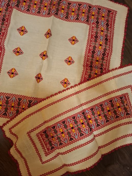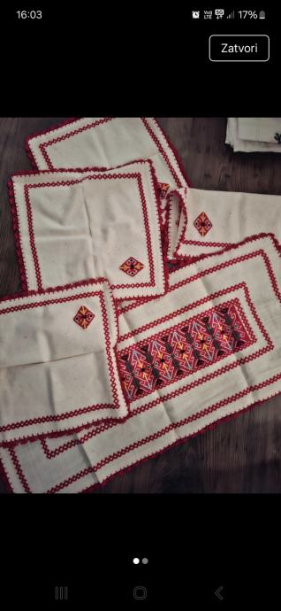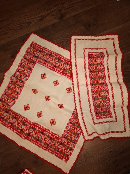 U kompletu dva vezena stolnjaka , uz njih šest malih koju idu gratis uz kupnju ta dva, jer su dobili mrljice
