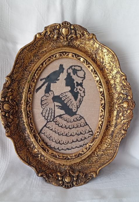 Stari goblen, djevojka i papiga, 29,5 × 24cm, 25e + poštarina, mob 098 959 7317