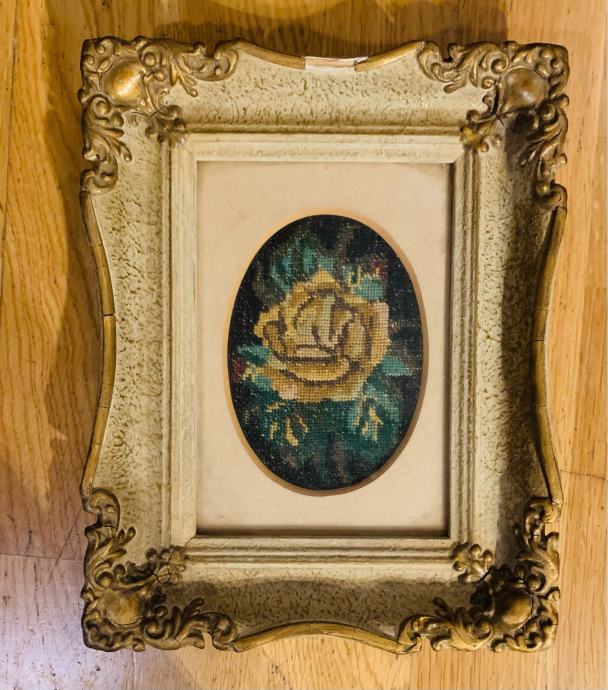 Stari goblen u raskosnom okviru velicine 26x20 cm