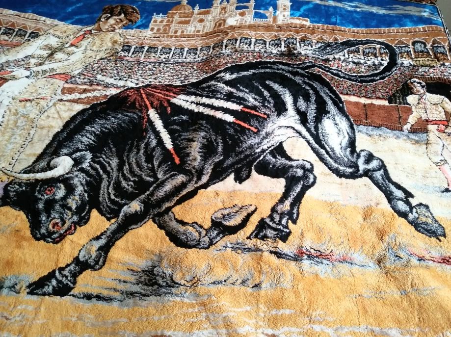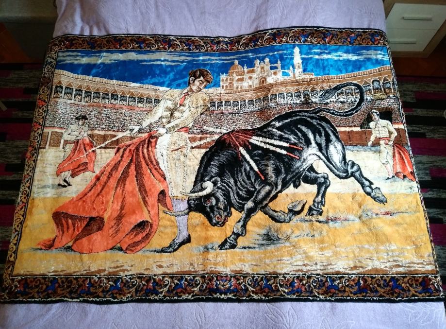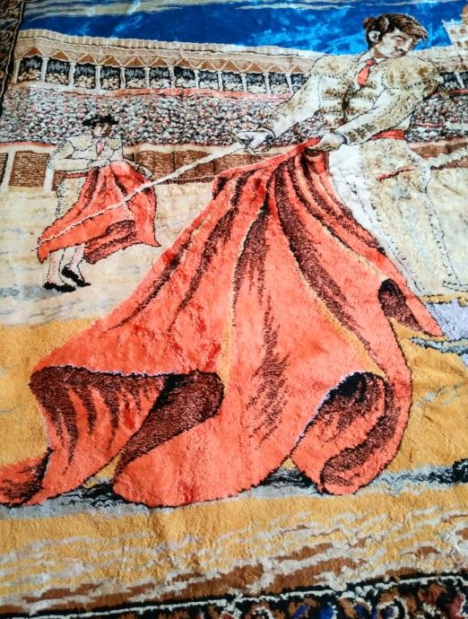 Tapiserija sa motivom koride donesena kao suvenir iz Španjolske 70-tih. Očuvana, bez ikakvih oštečenja. Koristila se malo kao ukrasni prekrivač.