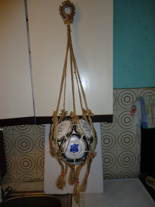 Kao na slici, lijepi ukras od pletene špage sa promotivnom loptom.