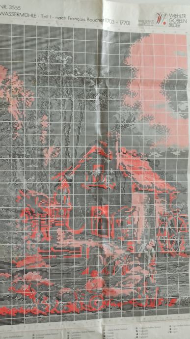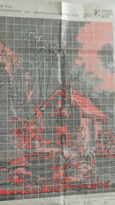 Original Wiehlerova slika goblen Wassermühle - VODENICA - prodajem samo shemu bez konaca za prvi dio (lijevi) slike.