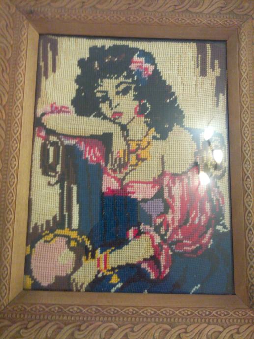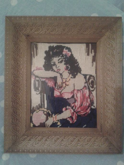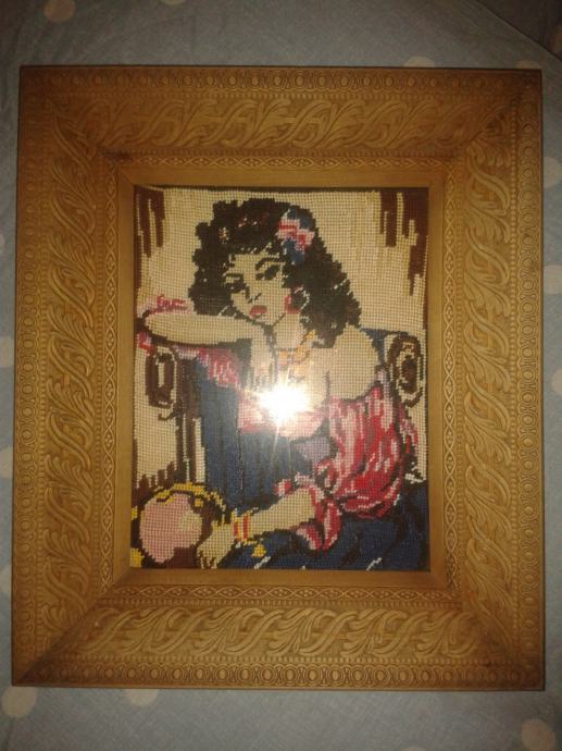 Wiehlerov goblen Ciganka sa drvenim okvirom ručni rad sitnim vezom Dimenzije okvira 36 x 30