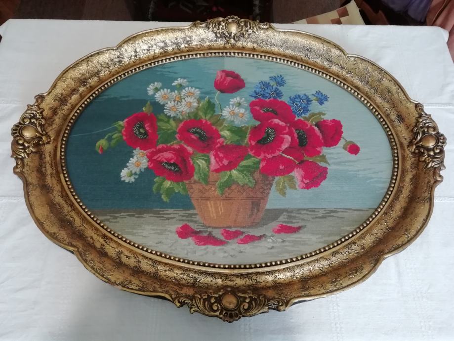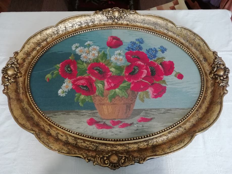 Originalan i očuvan Wiehlerov goblen s okvirom - makovi