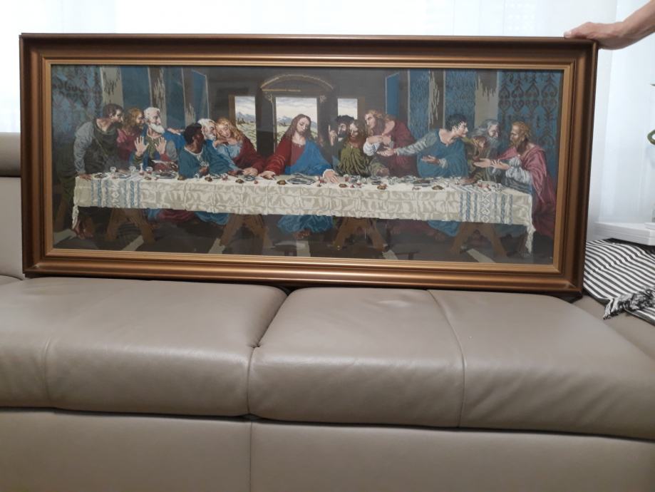 Vrlo pedantno izrađen Wiehlerov goblen "Posljednja večera" sa originalnim materijalom i shemom. Goblen je standardnih dimenzija , uokviren.