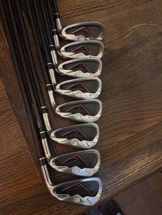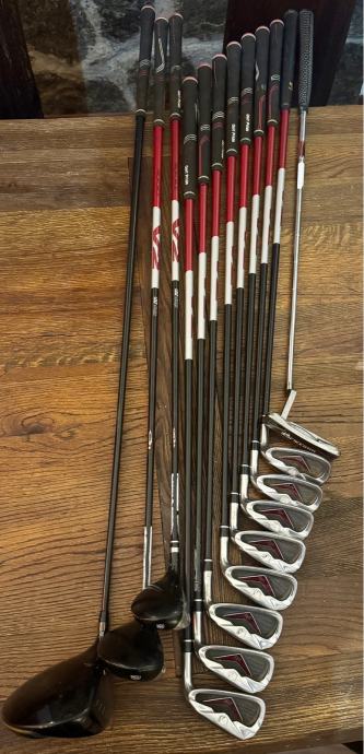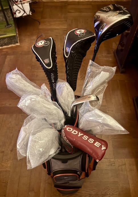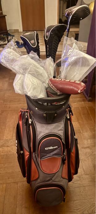 8 Wilson Stuff Iron palica (4-9, SW, PW), 2 Wilson Stuff Wooda (3W, 4 hybrid), Cobra driver i Odyssey putter, te pripadajuću Wilson torbu. Set je u izvrsnom stanju, sa njim je igrao iskusan igrač sa preko 30 godina u golfu. Raspoloživa i kolica za torbu, koja poklanjam.