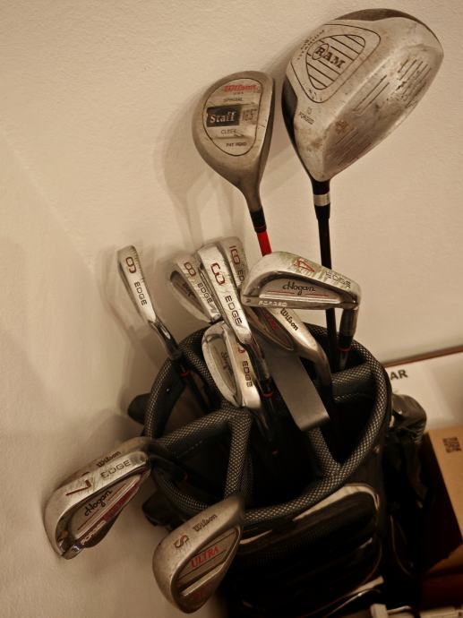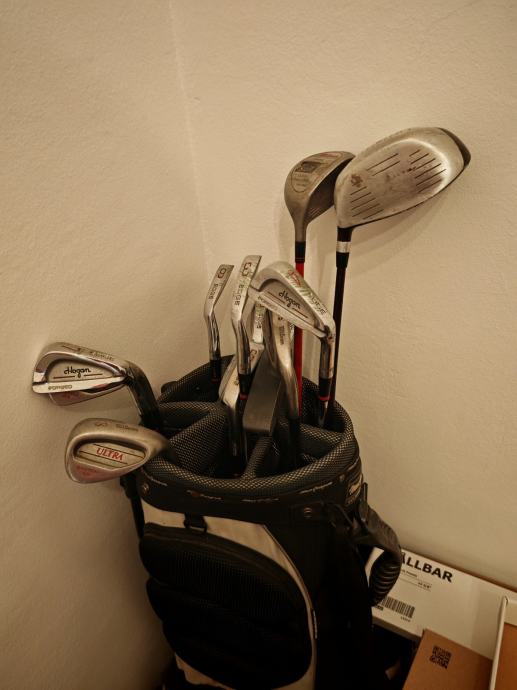 Prodajem set golf palica u torbi. U kompletu se nalazi nekoliko palica različitih vrsta - drajver, wood palice, željezne palice. Golf torba je crno-bijele boje s više odjeljaka za organizaciju opreme. Set je pogodan za rekreativno igranje golfa.