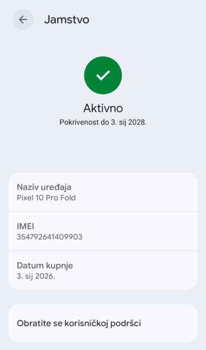 Prodajem Google Pixel 10 Pro Fold od 256 GB. Uređaj je kupljen u Njemačkoj. Uz njega dolazi kutija i sva tvornička oprema. Kratko korišten, nema ni 10 ciklusa punjenja. Nažalost, račun sam negdje zagubio. Moguća provjera uređaja, te prilažem screenshot od jamstva i baterije.