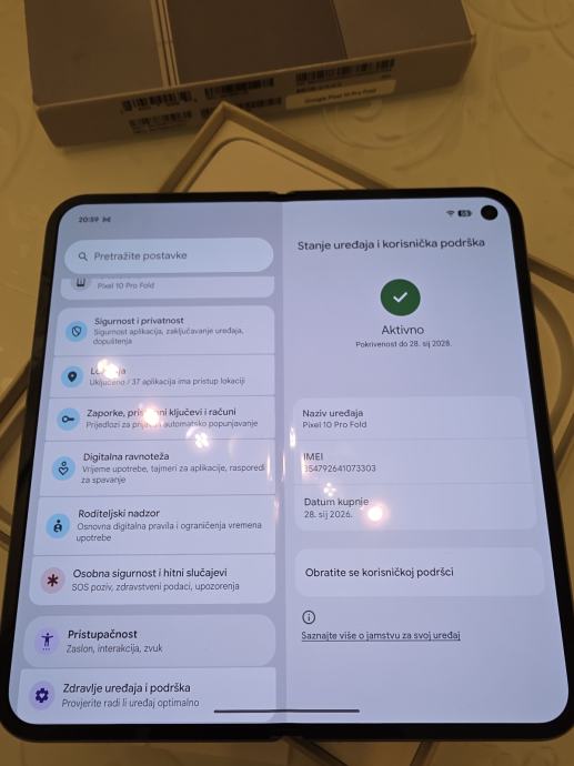 Stanje unutarnjeg i vanjskog zaslona je 9/10, jedna manja ogrebotina koja se ne vidi na slici.