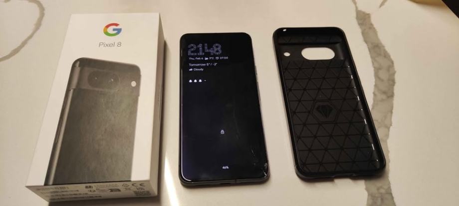 Pixel 8, ispravan, koristen godinu dana, prilikom pada razbijeno staklo i pojavila se crta mrtvih pixela na ekranu. Kutija i maska u paketu. Samo osobno preuzimanje