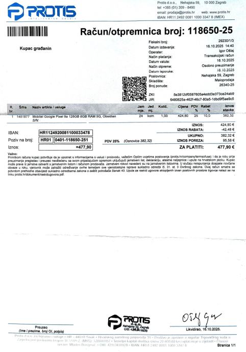 Prodajem Pixel 9a, skoro nov, star 4 mjeseca, kupljen u Hrvatskoj. Uz mobitel prilažem račun iz trgovine uz koji ide garancija još do pune 2 godine starosti uređaja. Stanje uređaja 10/10.