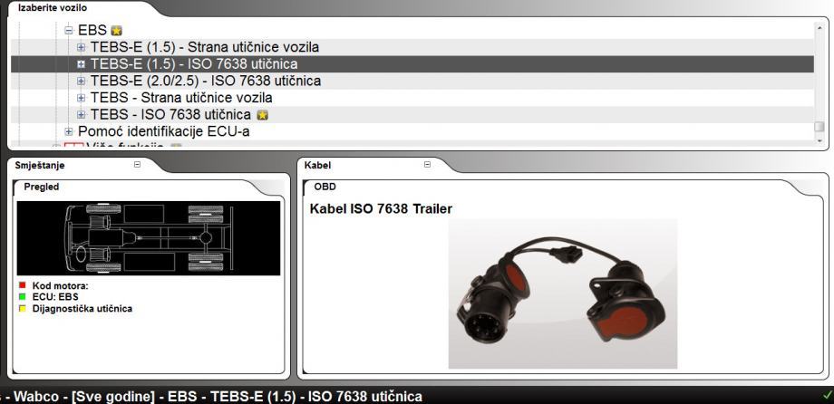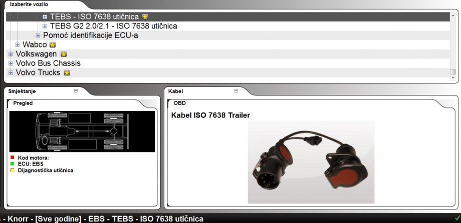 Za dijagnostiku poluprikolica s ventilima Knorr Bremse, TEBS, TEBS i G2.0 / 2.1