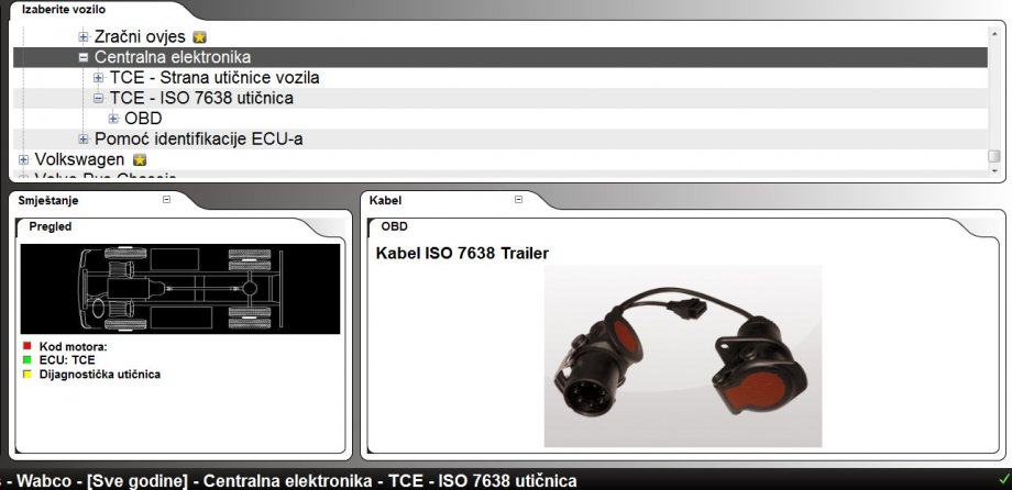 Dijagnostički kabel ISO 7638 za dijagnostiku prikolica.