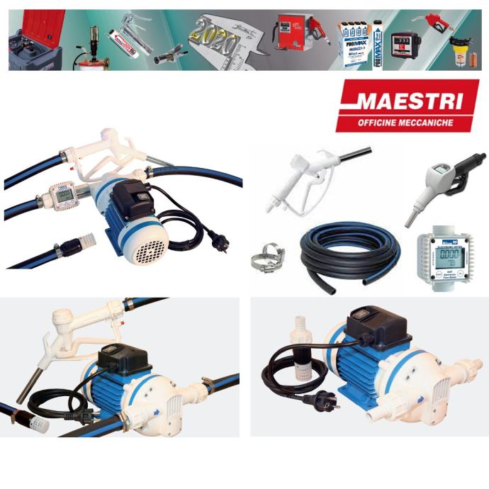 Tvrtka Maestri čiji smo distributeri proizvodi također i el. pumpe za točenje, pretakanje i manipuliranje diesel uljem, vodom i antifreeze, mastima za podmazivanje, razne mazalice, ručne - manualne pumpe, pneumatske pumpe, razne šprice i sl.