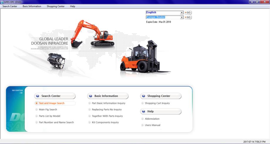 Elektronički katalog za odabir rezervnih dijelova za strojeve Doosan.