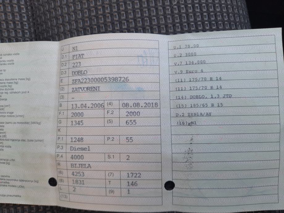 Fiat doblo 1.3 mtj, 55 kw u dijelovima prodajem 2006 god