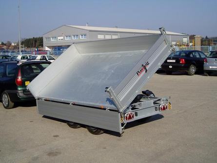 Kiper prikolica Pongratz-nova, kipanje na ručnu hidrauličnu pumpu, dimenzije sanduka 3100X1760 mm, uk. dopuštena masa 3000 kg. Cijena je bez PDV-a sa gotovinskim popustom od 10%.