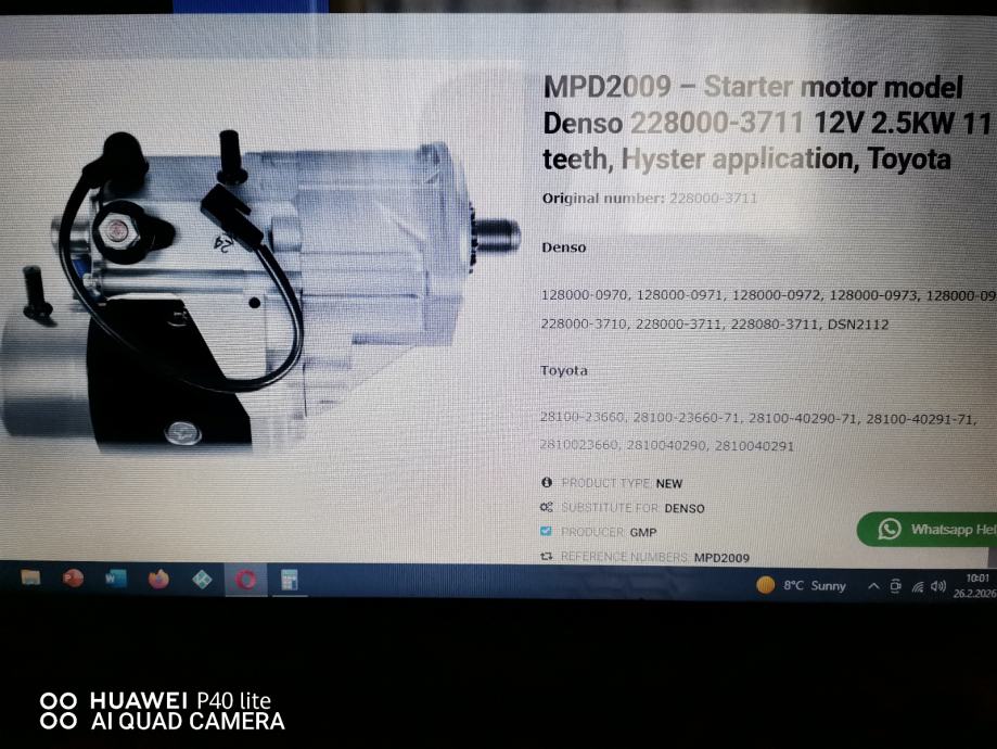 Prodajem reparirani anlaser za Hyster (80-130) toyota industrijski motori 12V 2.7 kw kompletno obnovljen, paše i na Perkins (serija 1000) četiri cilindra... 0959148700