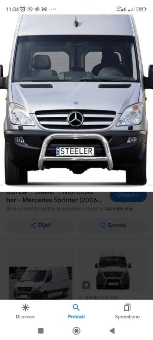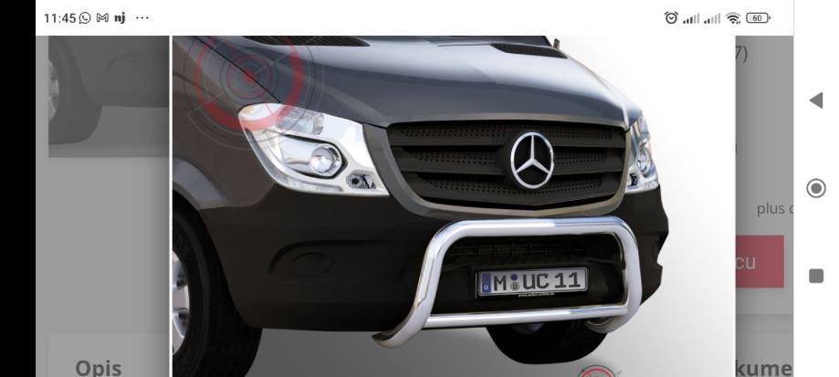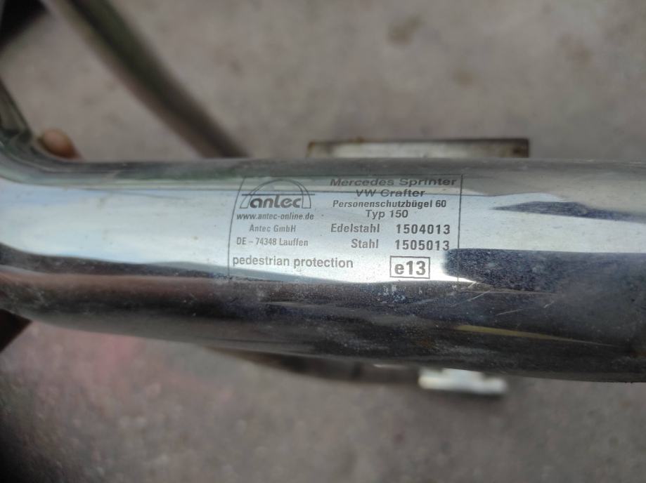 Mercedes sprinter VW Crafter orginal bull bar cross bar pedestrian protect zaštitna traverza cijev inox sa atestom
