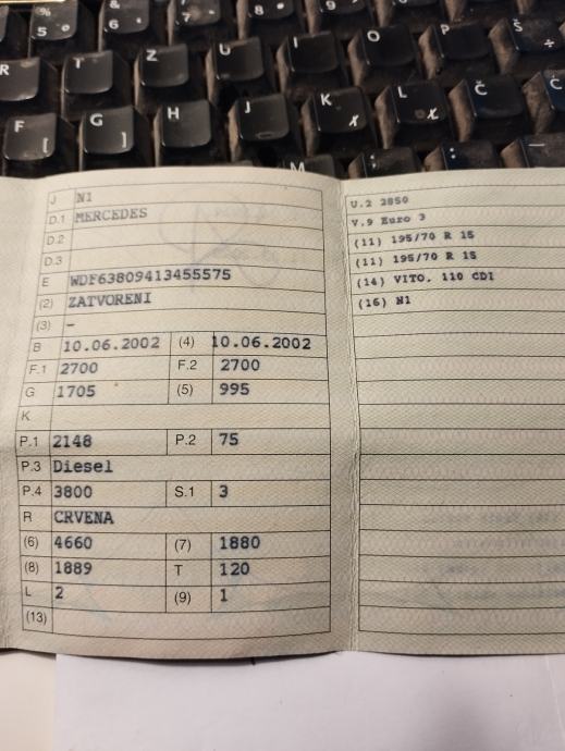 Mercedes vito 110 cdi, 2002 god, 75 kw, 2200 ccm u dijelovima prodajem