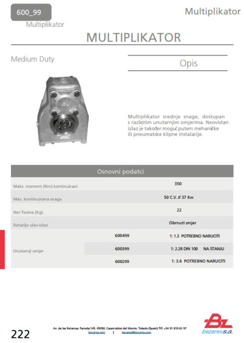 Kutija za redukciju okretaja, MULTIPLIKATOR srednje snage.