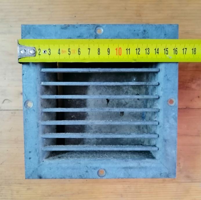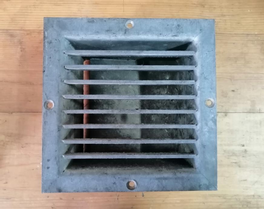 Veća pocinčana rešetka, rozeta, podnica za odvod vode iz tovarnog prostora za kombi vozila (korištena u kombiju Volksvagen Crafter, Mercedes Sprinter), kamion, brod, vrt ili neku drugu namjenu veličine cca 16,5 x 16,5 x 7,5cm.