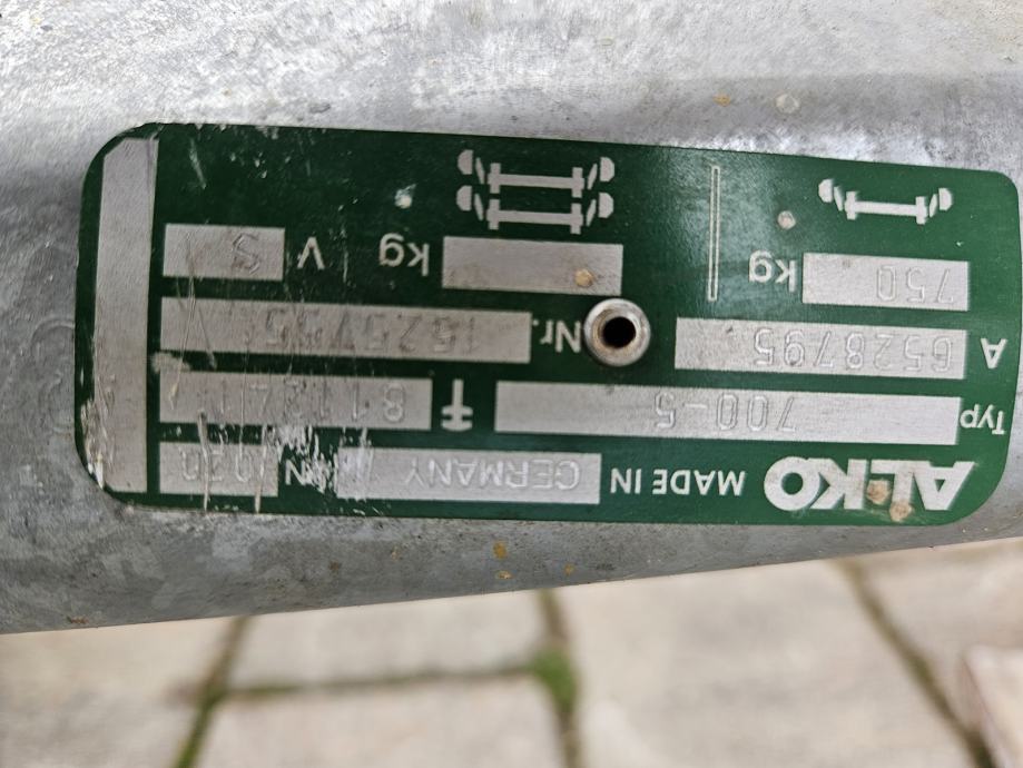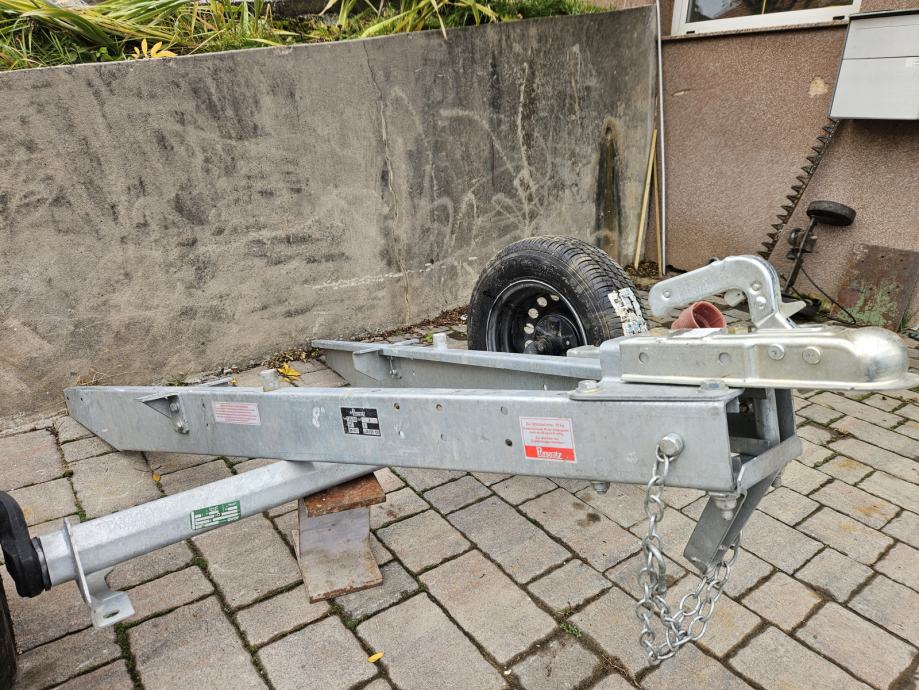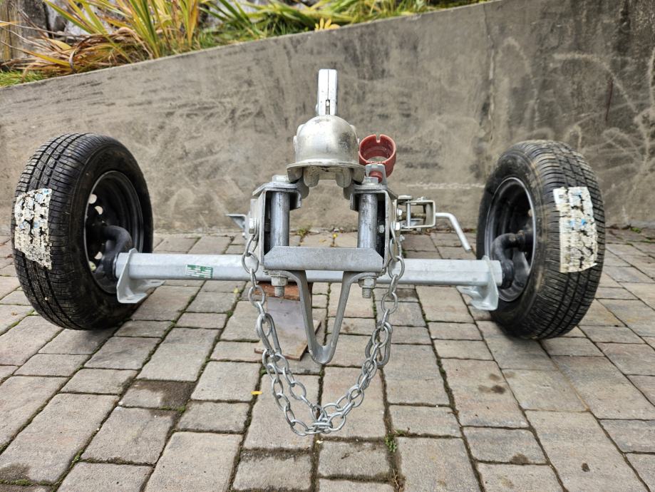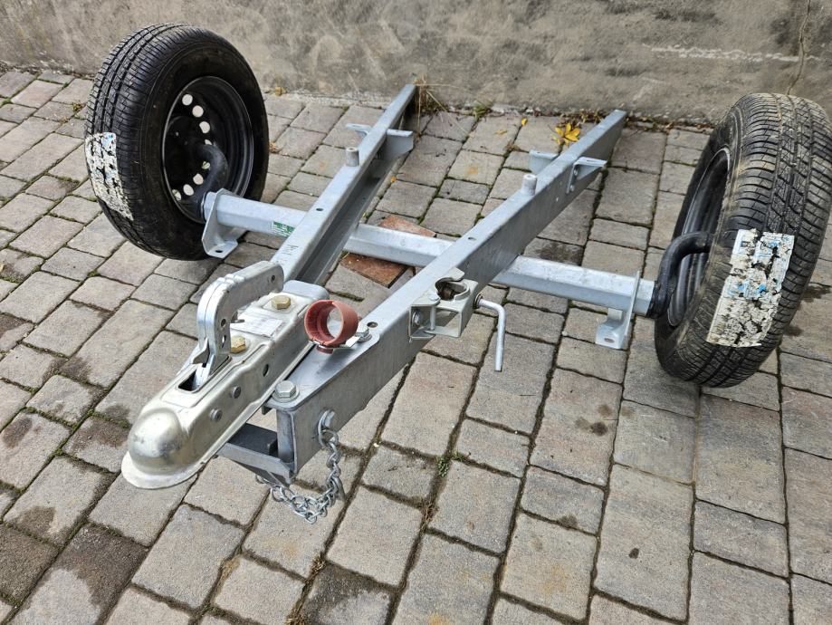 Osovina za auto prikolicu sa kotačima i rudom nekorišteno.