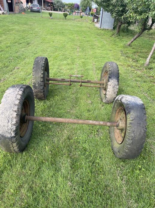 Prodajemo osovine za traktorku prikolicu. Na zadnjoj se nalazi kočioni sistem