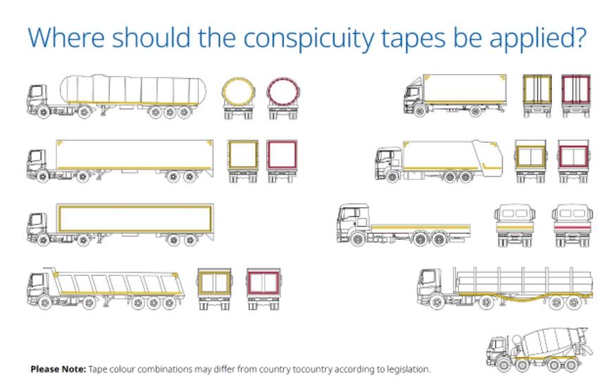 - na stražnji dio kamiona : žuta ili crvena reflektirajuća folija