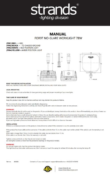 STRANDS RADNO SVIJETLO , NO GLARE ,FOR9T NO-GLARE WORK LIGHT 78W