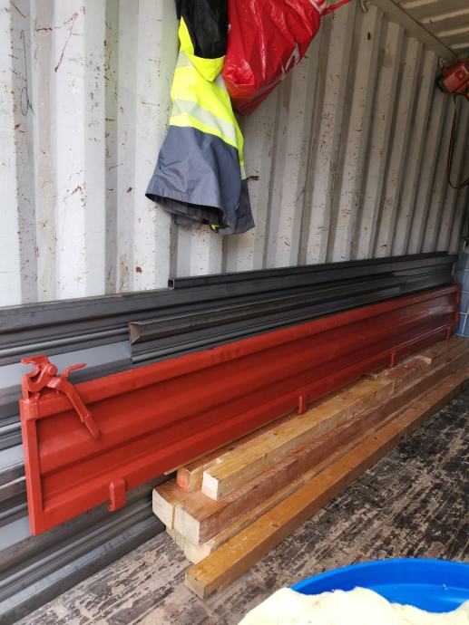Prodajem komplet rabljene stranice za kiper, pjeskarene i ofarbane u temeljnu boju, stranice su sa originalnim zatvaračima i šarkama MeillerKipper, dužina stranica 3.80, visina 40cm, skinute sa MAN 10.180, zadnja stranica nova i bit će prilagođena potrebnoj širini sanduka 2.20 ili 2.30cm ili šire ako je potrebno.