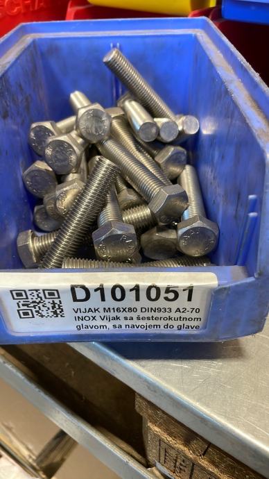 Vijak M16x80 DIN 933 A2-70 Inox vijak sa sesterokutnom glavom sa navojem do glave.
