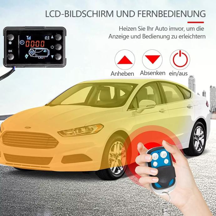 Daljinski upravljač mora biti istaliran prije nego što se može koristiti. Korake možete vidjeti u opisu proizvoda. Kompaktna struktura, jednostavna za instalaciju. Kada se vozilo zamijeni, može se instalirati u novi automobil. Dinamički LCD zaslon jasno prikazuje radni status stroja. Gorivo, snaga, temperatura mogu se podesiti proizvoljno. Rashladna tekućina motora može se prethodno zagrijati kako bi se spriječilo trošenje motora pri niskim temperaturama. Hlapljiva tehnologija, kroz keramičku svjećicu zagrijavanje goriva se isparava u plin, brzo paljenje, potpuno izgaranje.