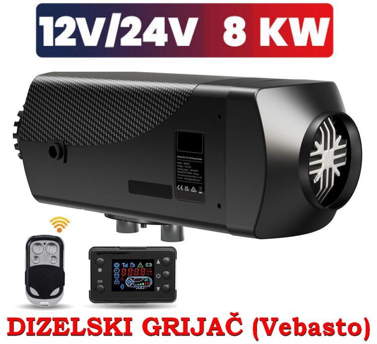 HCalory 12V/24V 8KW Parking grijanje (vebasto) zraka, dizel, daljinski upravljač, LCD monitor